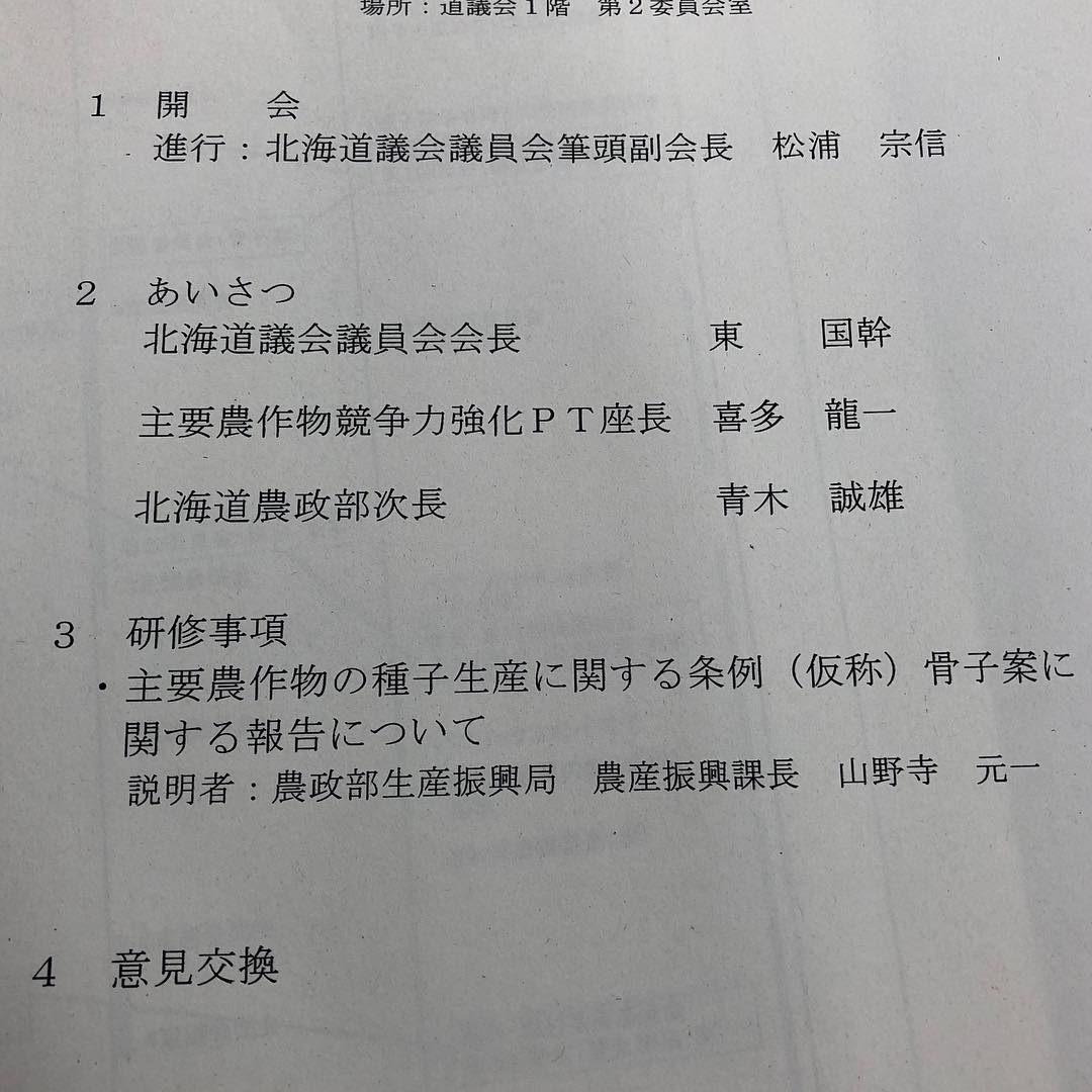 9月21日.2018 本日も代表質問継続中ですが、お昼は議員会の全体研修会です。 研修事項は「主要農作物の種子生産に関する条例(仮称)骨子案に関する報告について 午後からは他会派の代表質問が始まります。 https://www.instagr […]