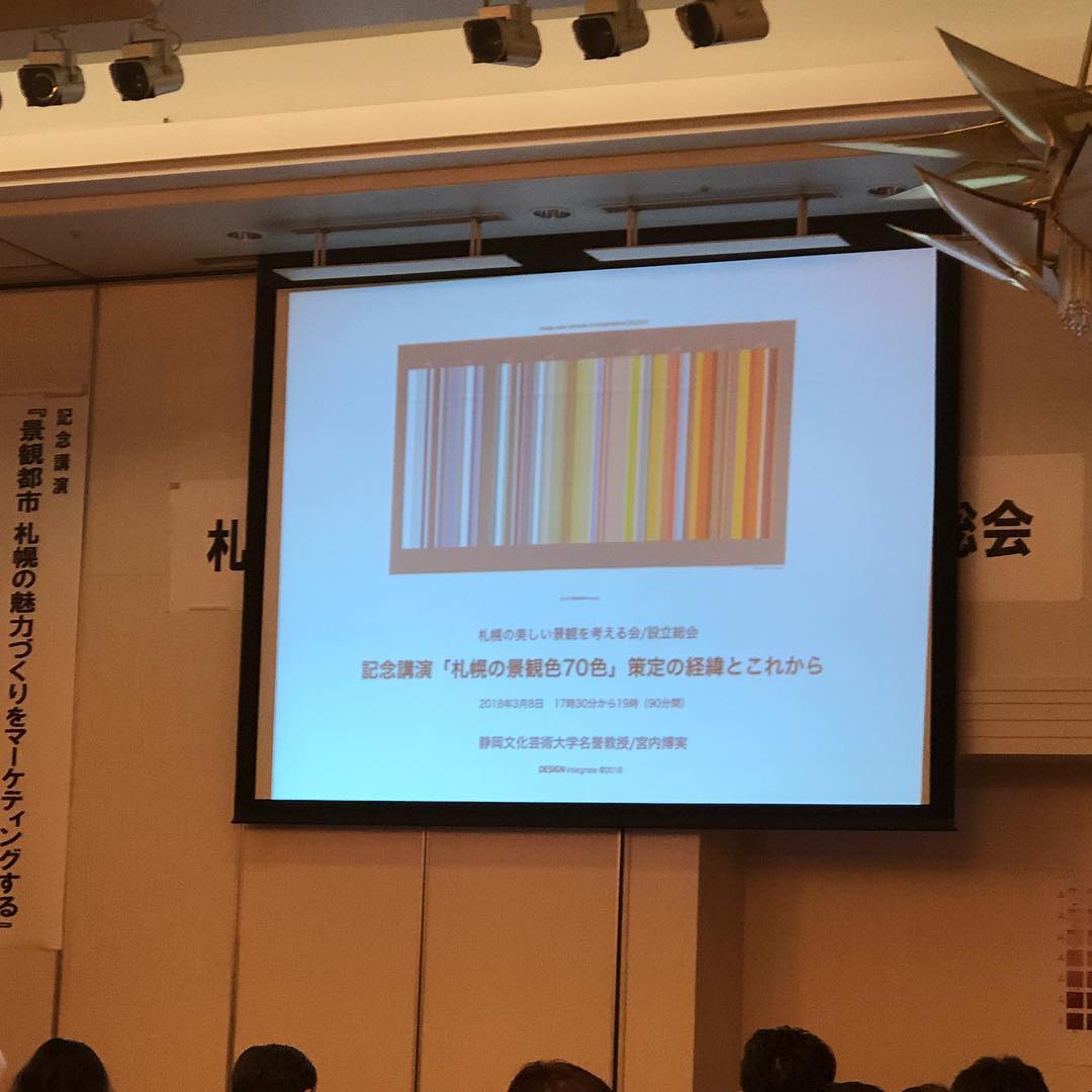 3月8日.2018 札幌の美しい景観を考える会設立総会 記念講演として静岡文化芸術大学 名誉教授「宮内 博実」さんのお話を聞いております。 お題は「景観都市 札幌の魅力づくりをマーケティングする」です。
