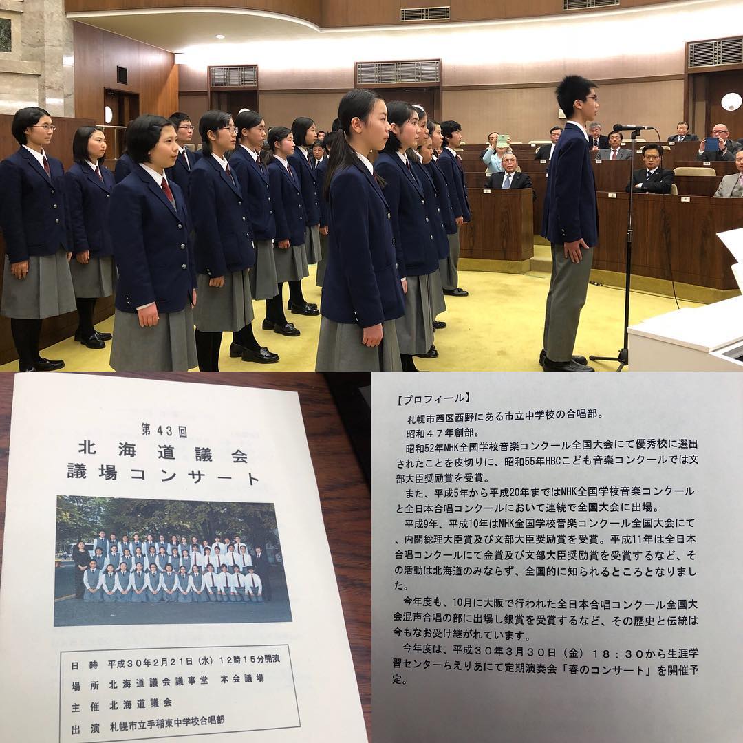 2月21日.2018 #議場コンサート があり #手稲東中学校 の #合唱部 から素晴らしい混声を頂きました。 #かとう貴弘 https://www.instagram.com/p/Bfcqpf3j0ZJ/embed/