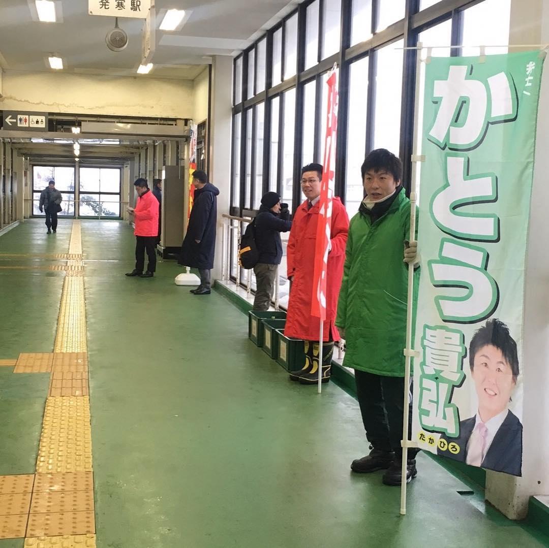 2月5日.2018 今日は #中村代議士 #村山市議 と #発寒駅 でご挨拶してきました。 今日から第69回 #さっぽろ雪まつり が開会されますが #天気 が心配ですね。 今日からまた1週間 #元気 に過ごしましょう! #かとう貴弘 #通勤 […]