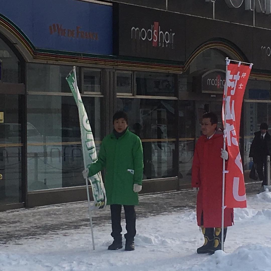 1月22日.2018 多くの皆さんから誕生日メッセージ頂きありがとうございます。 35歳のスタートも全力で駆け抜けて行きますので引き続き皆様方のご指導をよろしくお願い致します‼️ 今朝はJR琴似駅前で、村山市議と一緒に立ちました!