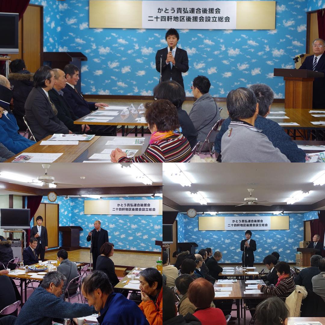 12月10日.2017 「かとう貴弘 二十四軒地区 後援会」設立総会を開催して頂きました。 師走の何かとご予定のある中、またお足元の悪い中にも関わらず、多くの皆さんにお集まり頂き、まずは「かとう貴弘」の人となりをお話しさせて頂き、北海道の現状や […]