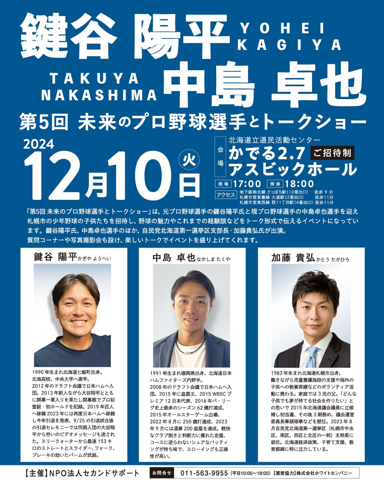 11月19日.2024 今年もトークショーの時期がやってきました 残念ながら今年引退した 道産子ピッチャー鍵谷陽平君 そして今年”も”中島卓也君です 一般応募があるかは主催者さんからは まだ確認が取れていません♂️ 子供達に夢や希望 そして、挑戦する気持ちが出ると嬉しいですね #鍵谷陽平 #中島卓也 #かとう貴弘 #トークショー https://www.instagram.com/p/DCh1vz8TqEC/embed/ « 前のページ 次のページ » ブログトップに戻る