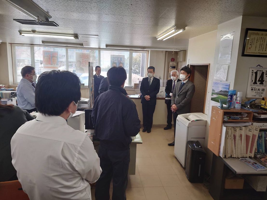 今朝は村山たくじ市議と一緒に企業への朝礼に伺いました。
