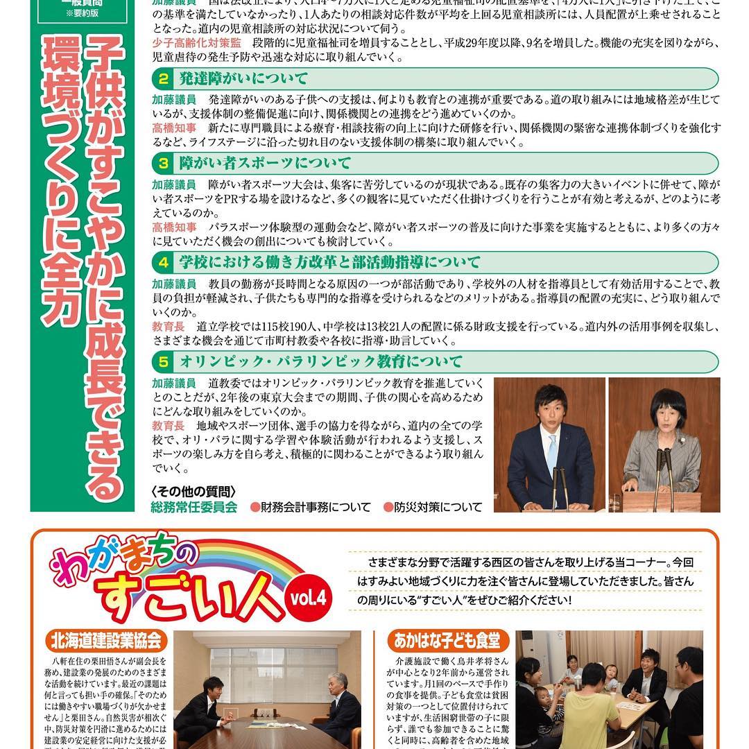 #道政だより #北海道議会議員 #この手からつなぐ #かとう貴弘