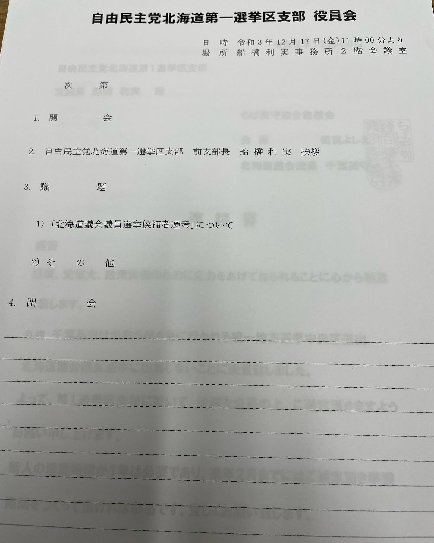 北海道議会重鎮の中央区選出の千葉英守先生が次の選挙には立候補しないという決断され、後任について公募をかけるという内容でした。