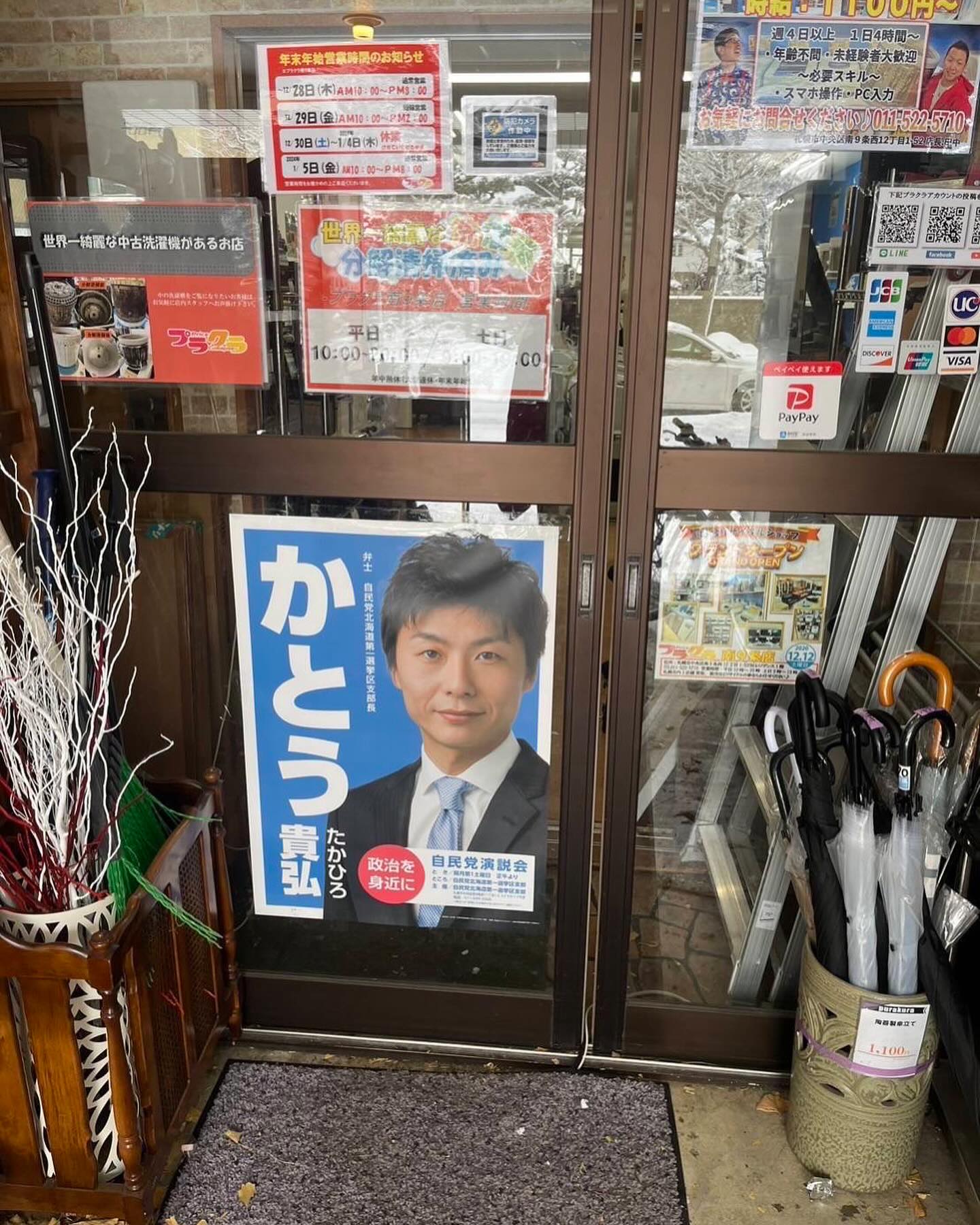 #ポスター掲示 #ポスター掲示場所募集中 #荒木生花店 #さんかい #プラクラ #無花果 #北海道一区 #加藤貴弘 #この手からつなぐ #政治を身近に