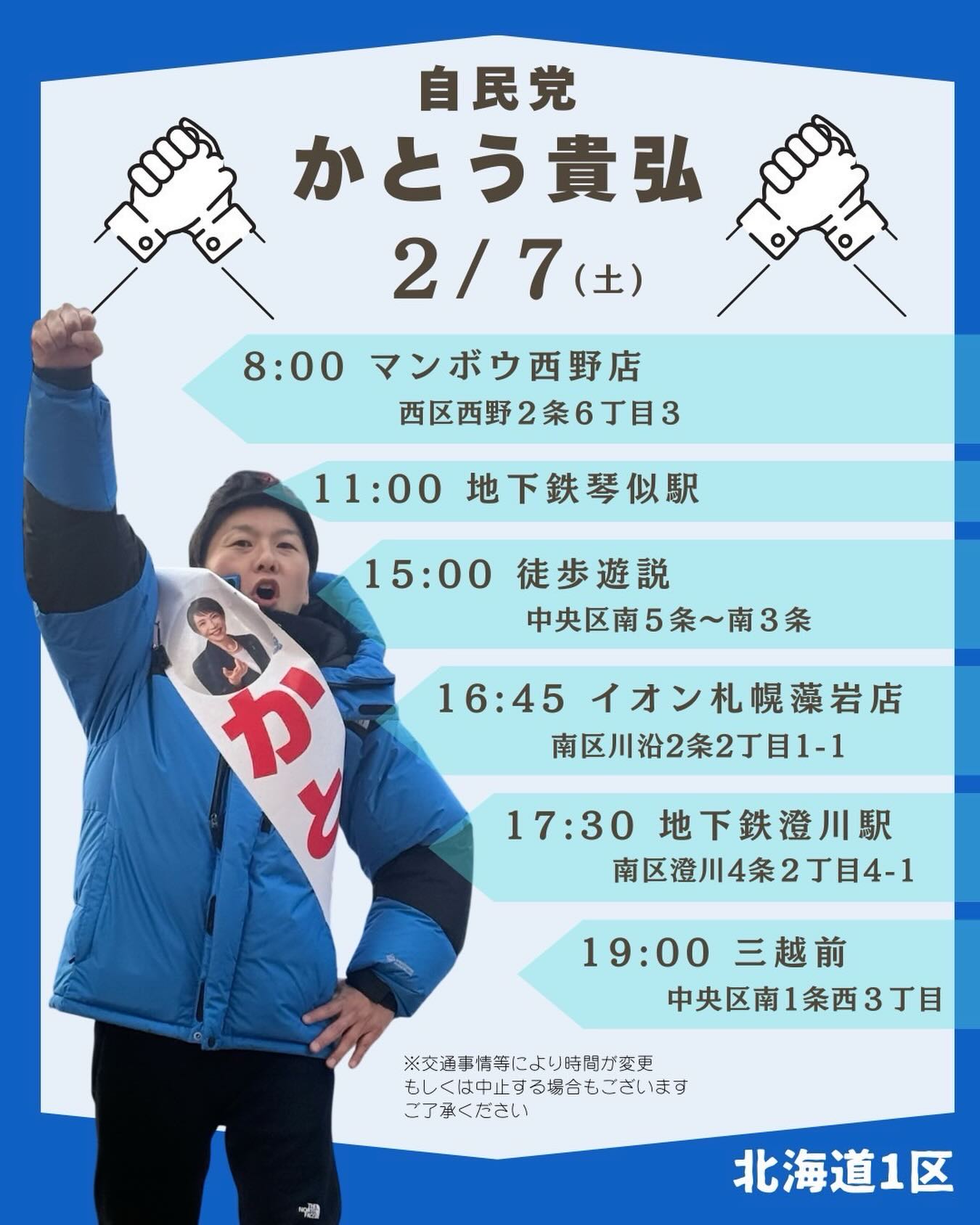2月6日.2026 2/7(土)最終日の予定です。最終最後まで、お力をお貸し下さい️よろしくお願いいたします️ #かとう貴弘 #加藤貴弘 #北海道一区 https://www.instagram.com/p/DUacbRzj9Fm/embed/ « 前のページ 次のページ » ブログトップに戻る