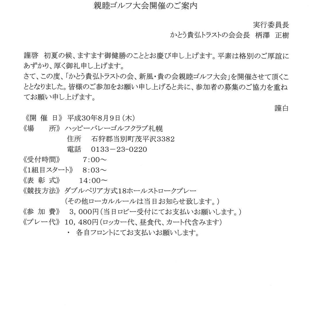 7月9日.2018 告知です。 来月、8月9日(木) ハッピーバレーゴルフクラブ札幌で私の企業後援会のゴルフコンペが行われます。 参加できる方はご連絡頂けると幸いです。 #告知 #8月9日 #ハッピーバレーゴルフクラブ札幌 #ゴルフコンペ […]