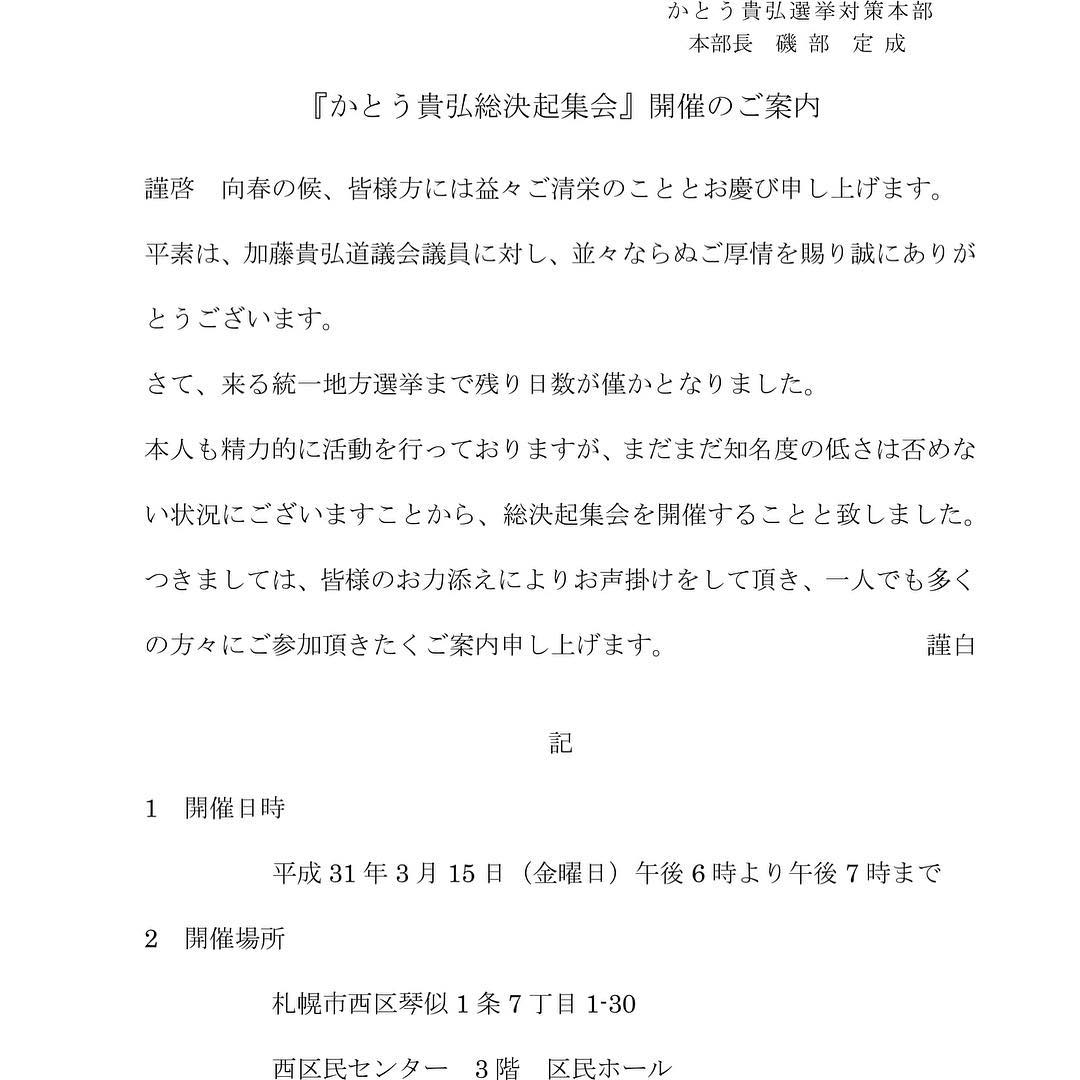 3月9日.2019 僕の総決起集会を開催して頂きます。 3月15日18時00分から19時00分まで 場所は西区民センターです。 子どもが泣いても、走り回ってもいい! 誰もが関われる会にしたい! 「政治を身近に」したいので! 皆さんをお待ちし […]