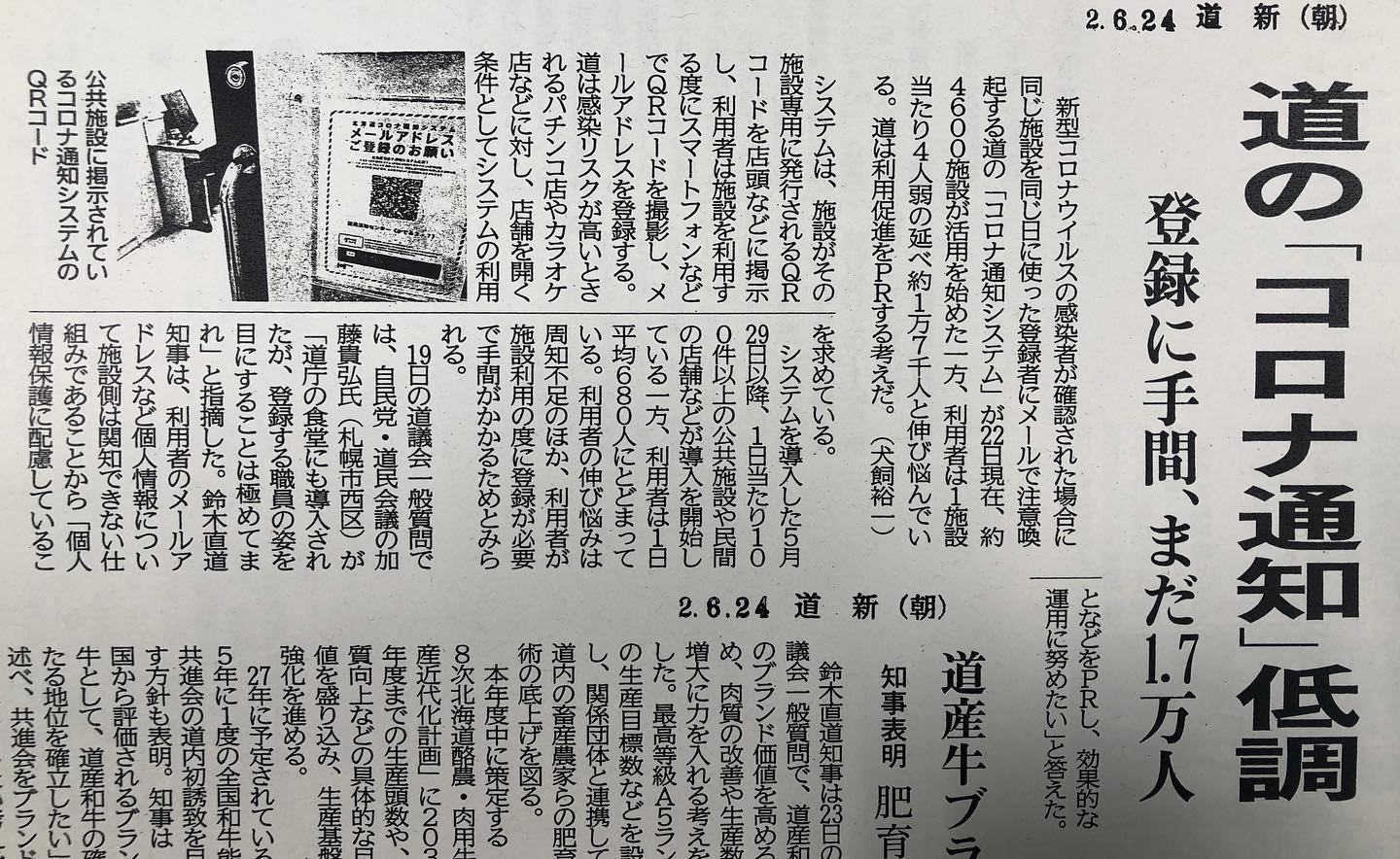 6月24日.2020 先日の質問が本日の北海道新聞に掲載されておりました。 道独自のコロナ通知システムですが、導入するお店にも利用する方にもメリットがなければ現実は進まないという事を指摘させて頂きました。 一つ一つの事業を意味あるものに取り組 […]