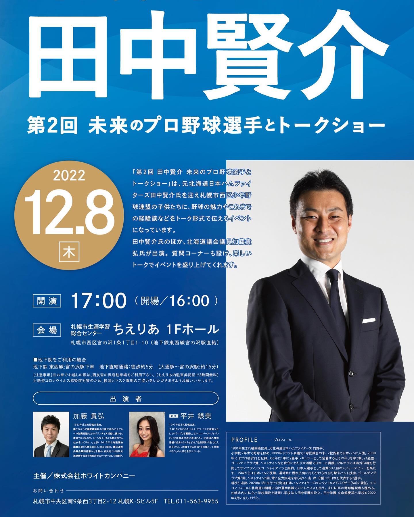11月10日.2022 4年ぶりに「田中賢介」さんとのトークショーをちえりあで開催を致します。 子供達の喜ぶ顔が楽しみです お問い合わせはhttps://white-co.jp/ #田中賢介 #北海道日本ハムファイターズ #スーパーアドバイザー […]