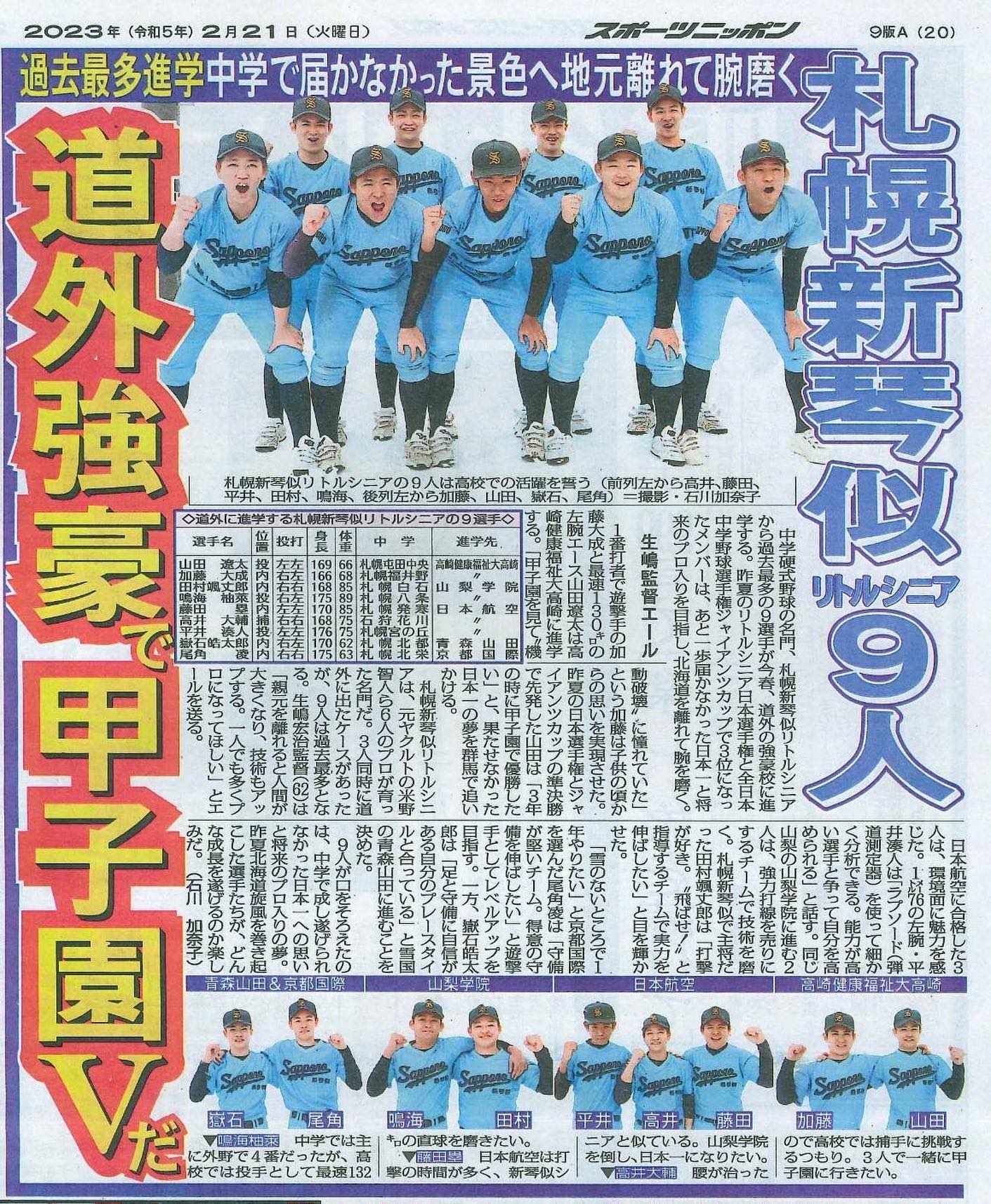 3月1日.2023 道外の高校にに優秀な子供達が行くのは寂しいけど、厳しい環境で己を磨き夢に向かっていく姿はかっこよく、尊敬に値します。 今の気持ちを忘れず頑張って下さい️ そして今日は高校の卒業式でしたね。 卒業生の皆さん、保護者の皆さん […]