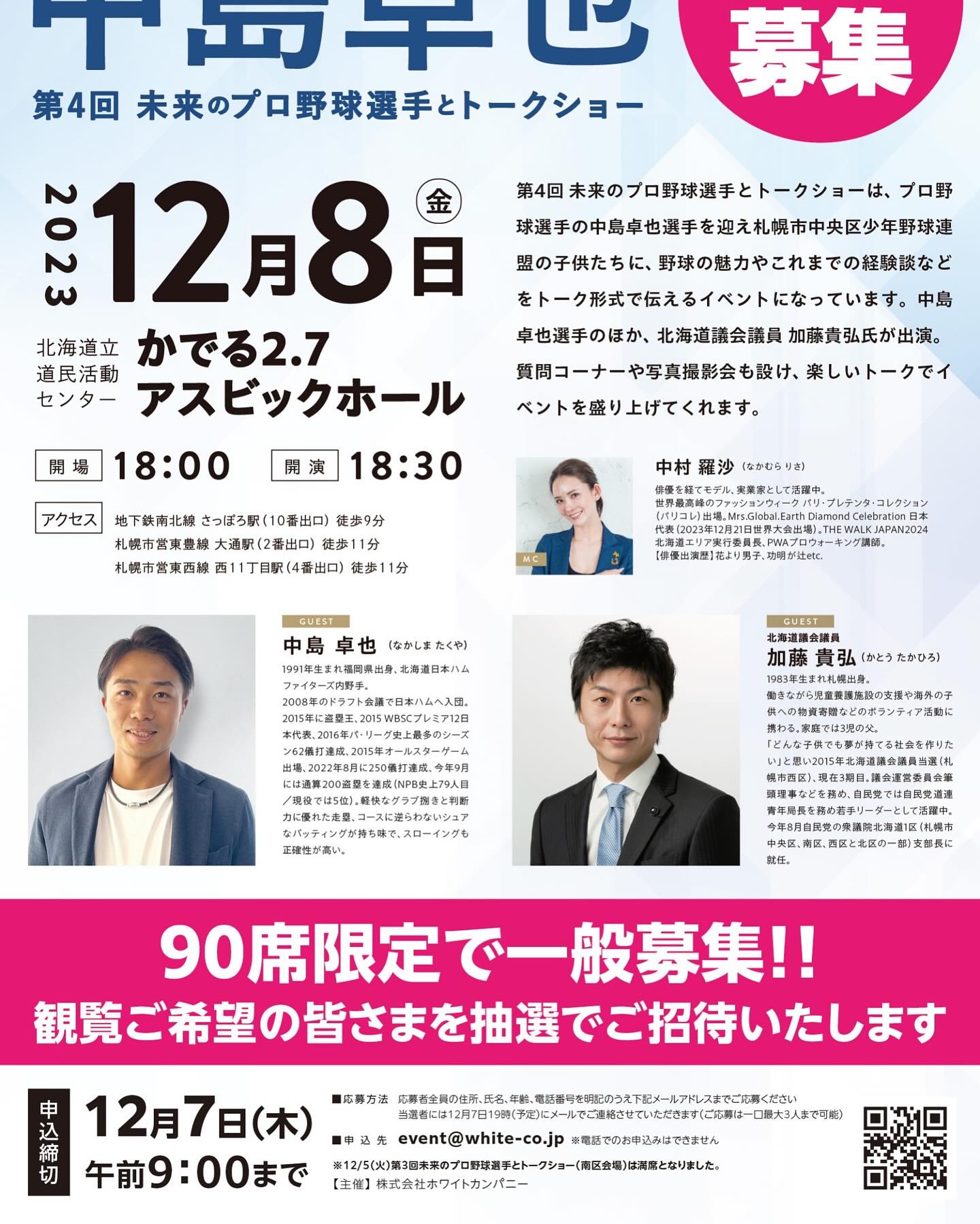 12月4日.2023 主催のホワイトカンパニーさんから。 一般の方もご覧頂けるように、 なったようです。 ご興味のある方はお申込み下さい。 #中島卓也 #トークショー #加藤貴弘 #札幌市中央区 #かでる27 https://www.inst […]