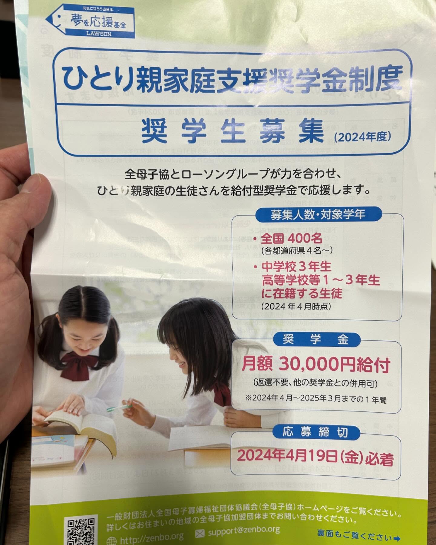 2月20日.2024 ひとり親家庭支援奨学金制度 条件等ありますので下記をご覧下さい。 http://doboren.jp/smarts/index/1/ #ひとり親家庭支援 #給付型奨学金 #母子寡婦 #ローソン #自分もひとり親家庭 #加 […]