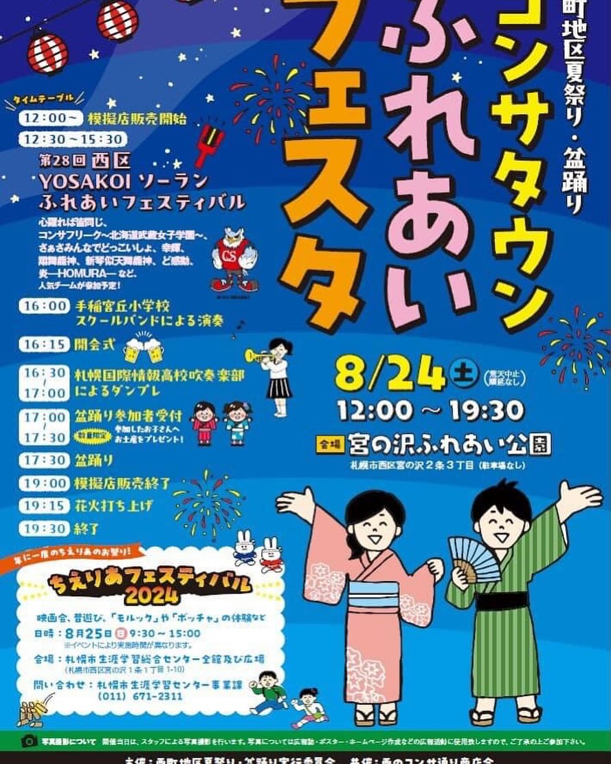 8月24日.2024 コンサタウンふれあいフェスタ 19:15からは花火が打ち上げられます️ 是非皆さん「宮の沢ふれあい公園」へ #札幌市西区 #宮の沢 #お祭り #花火 https://www.instagram.com/p/C_CeHa1 […]