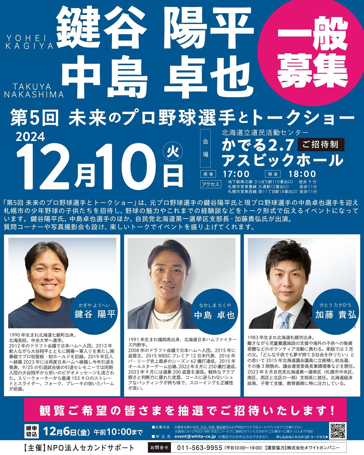 12月2日.2024 今年も一般応募ができるようです。 応募方法も記載されている通りです。 #鍵谷陽平 #中島卓也 #加藤貴弘 #トークショー #かでる27 #道産子アスリート #育成 https://www.instagram.com/p/ […]
