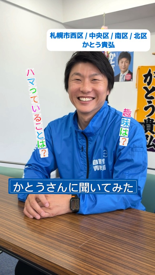 5月27日.2025 「かとうさんに聞いてみた」シリーズ第一弾 \自民党・かとう貴弘ってどんな人?/ 「素」を探るべく、 スタッフが度々お送りしていきます #かとう貴弘 #加藤貴弘 #素のかとうさん #札幌市西区 #札幌市中央区 #札幌市南区 […]