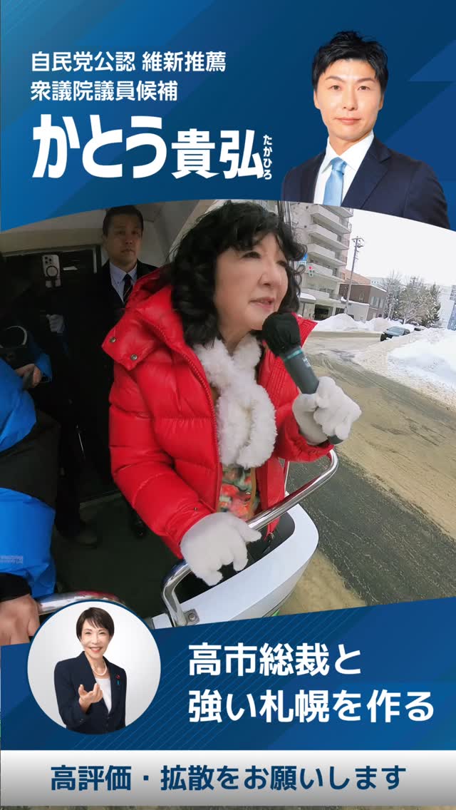 2月1日.2026 片山さつき財務大臣️かとう貴弘衆議院議員候補 自民党広報車 あさかぜ号から札幌の市内へ #加藤貴弘 #片山さつき #鈴木宗男 #あさかぜ号 #北海道一区 https://takahirokato.jp/wp/wp-con […]